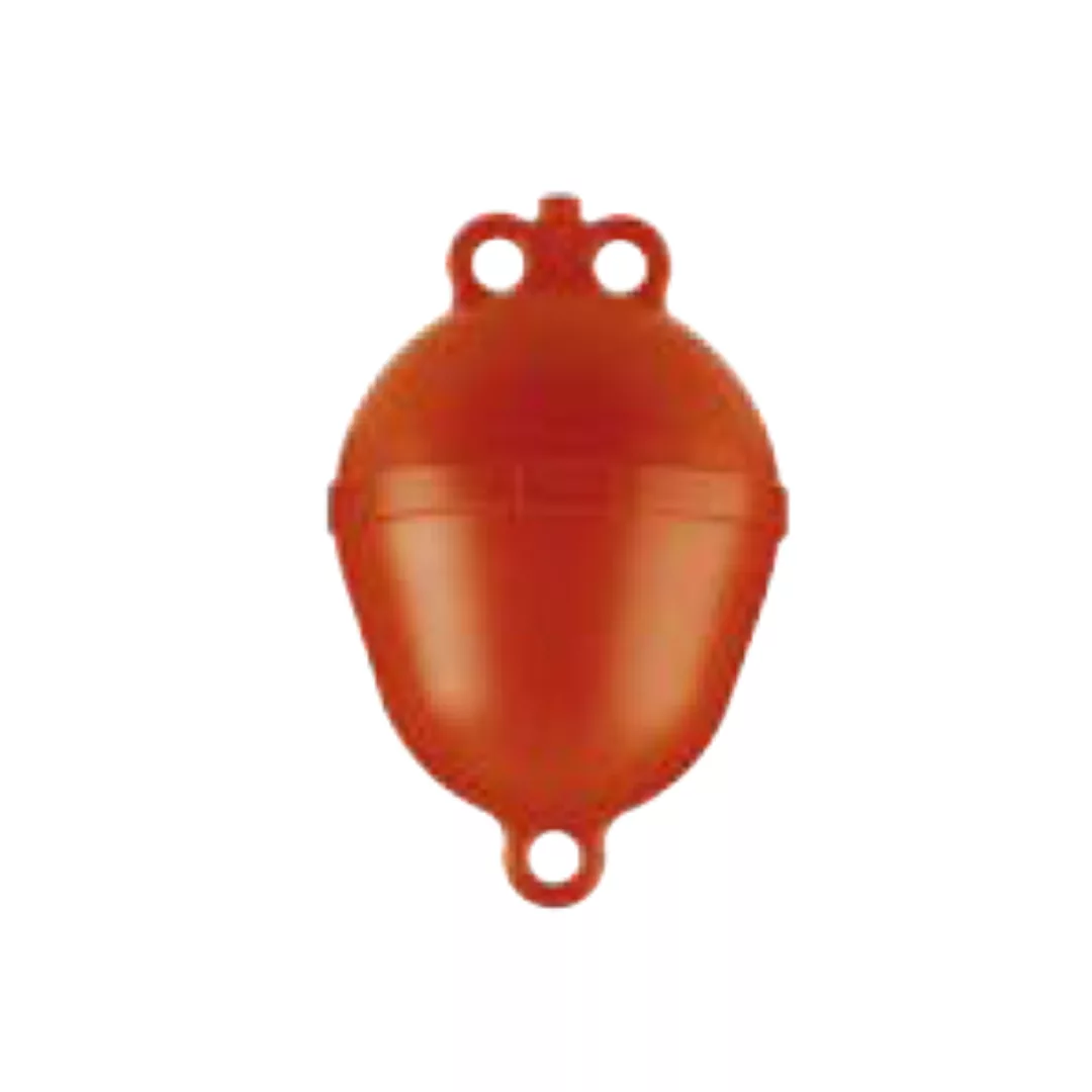 Boya tipo pera fabricada en polietileno soplado. Ø 25 cm. Altura 39 cm. Volumen 10 l. Flotabilidad 9,5 kg. Color amarillo