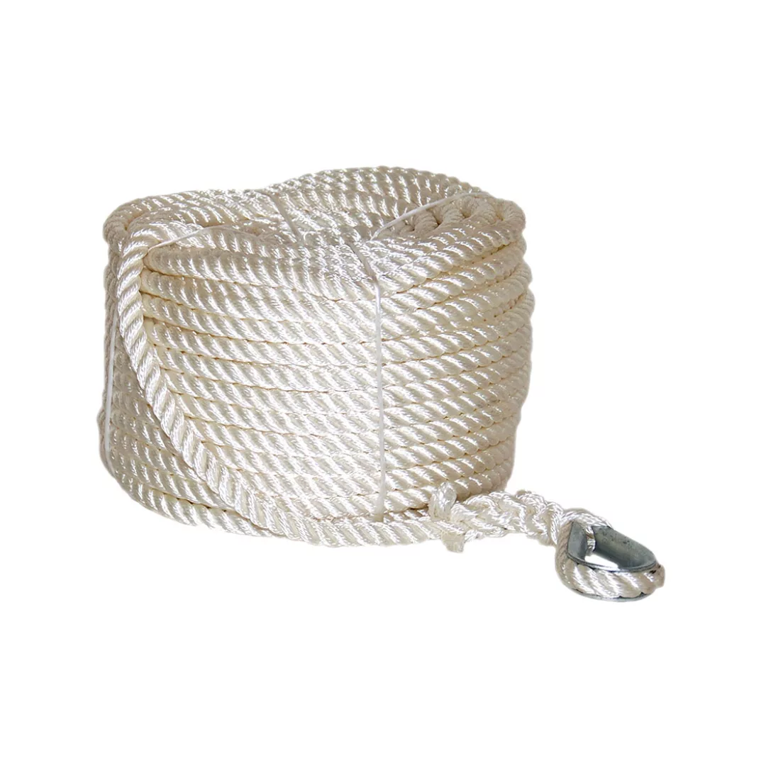 Cabo de fondeo de poliester, con gaza y guardacabos galvanizado. Ø 10 mm x 50 metros