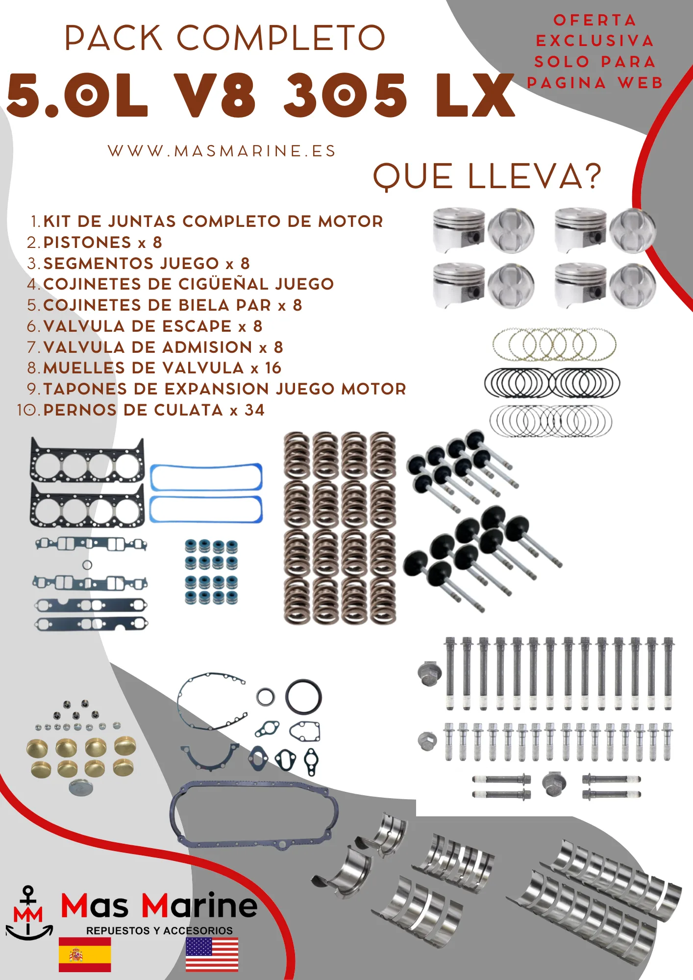 Este pack exclusivo solo está disponible en www.masmarine.es. ¡Aprovecha esta oportunidad para darle nueva vida a tu motor con componentes de alta calidad!