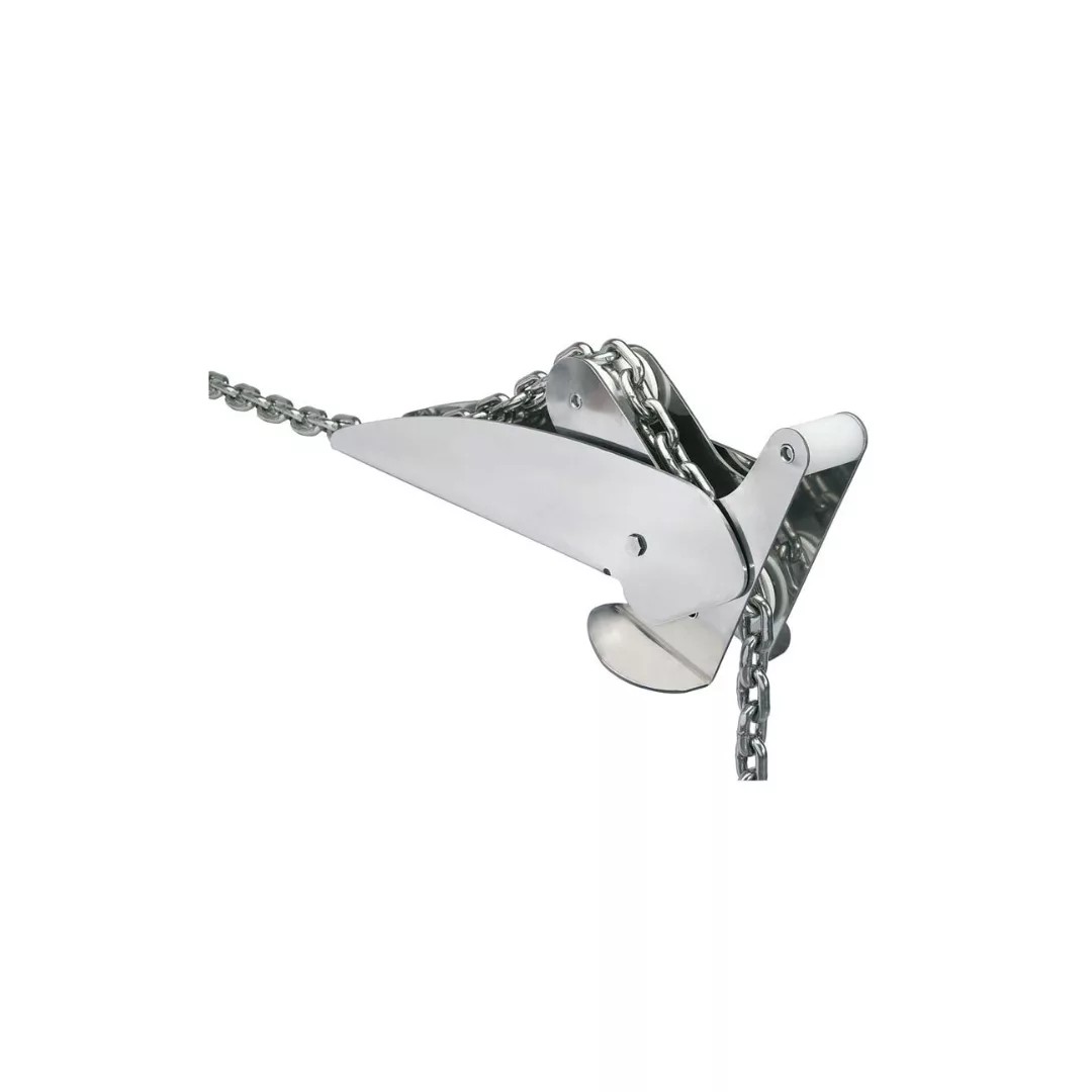 Fabricada de acero inoxidable AISI304 L. Fabricación europea. Basculante. Peso ancla 20Kg.