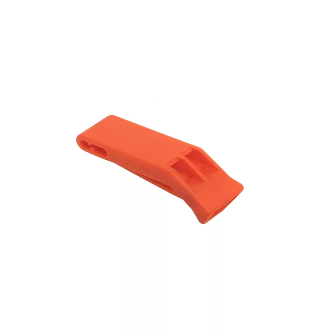 Fabricado de plástico rojo.